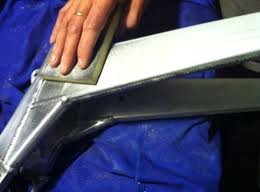 El primer paso es lijar la superficie ya sea mediante lijadora o a mano, se trata de pasar una lija fina sin llegar a rallar el aluminio. Una vez lijada la superficie habrá que limpiarla con un trapo limpio y disolvente para eliminar grasa o suciedad incrustada.